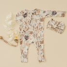 The Rue Bundle features our buttery soft Rue zipper pajama and coordinating bow headband in a dreamy boho floral print. With earthy tones and delicate blossoms, this set feels free-spirited and perfectly on-trend. The pajama is crafted from our signature bamboo fabric,breathable, stretchy, and incredibly soft, while the matching bow completes the outfit with a touch of boho charm.