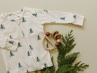 The Aspen bow headband features a creamy base scattered with deep evergreen trees, capturing the simple charm of the season. Made from our buttery soft bamboo fabric, it stretches for a snug yet gentle fit, keeping baby cozy and comfortable. Perfectly paired with The Aspen pajama, this bow brings a touch of timeless holiday spirit to every outfit.